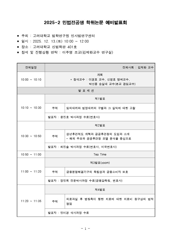 다. 주최: 고려대학교 법학연구원 민사법연구센터